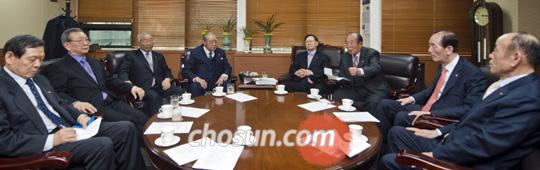 예비역 장성들의 모임인 성우회(星友會)의 고명승 회장, 재향군인회 박세환 회장 등 예비역 단체장과 군 원로들이 19일 오후 긴급 회동을 갖고 2015년으로 예정된 전시작전통제권 이양 및 한미연합사 해체에 따른 문제점을 논의하고 있다. /김지호 객원기자