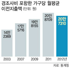 최근 통계청 조사 결과에 따르면 지난해 2인 이상 가구가 경조사비로 지출한 금액이 한 달에 21만1928원으로 집계됐다. 관련 통계를 작성하기 시작한 2003년에는 14만원이었고, 2009년에는 19만원으로 꾸준히 증가하고 있다.