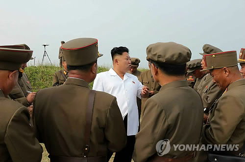 (서울=연합뉴스) 노재현 기자 = 북한이 김정은 국방위원회 제1위원장이 지켜보는 가운데 새로 개발한 전술유도탄을 시험발사했다고 27일 밝혔다.