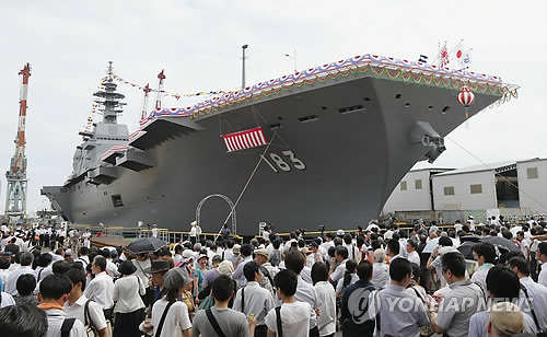 ↑ 일본 해상자위대의 항공모함급 헬기 호위함 `이즈모`. (교도=연합뉴스 자료사진)