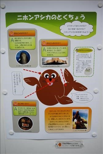 시마네현은 다양한 표정의 강치 캐릭터를 만들어 다케시마(독도의 일본 이름)를 설명하는 전시판에 활용했고, 전시실에는 강치를 활용한 만화까지도 그려 남녀노소 누구나 쉽게 알 수 있도록 이해를 돕고 있었다.