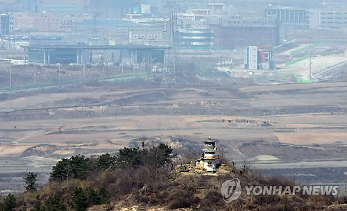 ↑ 도라산전망대에서 바라본 북한의 초소와 개성공단. (연합뉴스 자료사진)