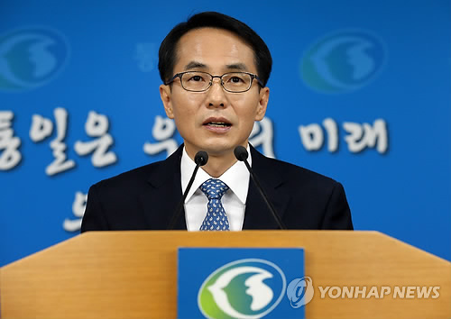↑ 임병철 통일부 대변인 브리핑 (서울=연합뉴스) 전수영 기자 = 임병철 통일부 대변인이 29일 오전 서울 세종로 정부서울청사에서 브리핑하고 있다.