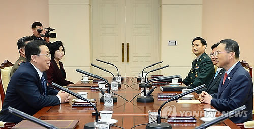 ↑ 지난 2월 판문점 우리측 지역 평화의 집에서 열린 남북 당국간 고위급 접촉 (연합뉴스 자료사진)
