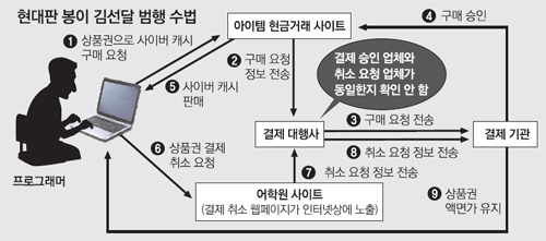 서울 S대 컴퓨터공학과를 나온 프로그래머 김모 씨(27)는 지난해 말 중국동포 프로그래머인 이모 씨로부터 은밀한 제안을 받았다. 김 씨는 "한국 온라인 결제의 허점만 발견하면 돈을 주겠다"는 제안을 받고 `연구`에 나서 해킹 없이도 돈을 벌 방법을 찾았다.