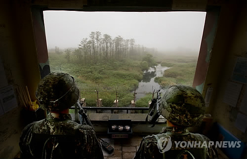 ↑ 북한군이 10일 오전 경기도 파주지역 군사분계선(MDL)에 접근해 우리 군이 경고방송에 이어 경고사격을 했다고 합동참모본부가 밝혔다. (연합뉴스 자료사진)