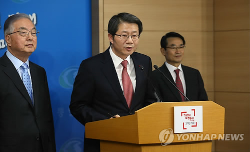 ↑ 정부, 남북 당국자 대화 北에 제의 (서울=연합뉴스) 전수영 기자 = 류길재 통일부 장관이 29일 오전 서울 세종로 정부서울청사 브리핑룸에서 내년 1월중 남북간 상호 관심사에 대한 당국자 대화를 가질 것을 북측에 공식 제의하고 있다. 왼쪽은 대통령 직속 통일준비위원회 정종욱 민간 부위원장.