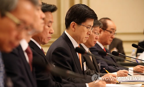 ↑ 업무보고장의 법무부 장관 (서울=연합뉴스) 도광환 기자 = 박근혜 대통령 주재로 21일 오전 청와대 영빈관에서 열린 `국가혁신`을 주제로 한 합동 신년 업무보고에서 황교안 법무부 장관이 참석해 박 대통령의 발언을 메모하고 있다.