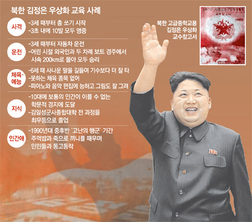 세살때 백발백중 사격… 여덟살도 안돼 車몰고 도로 질주우상화 교육 되레 역효과… 교사들 설명 어떻게 할지 난감 동아일보 입력 2015.04.14 03:05 수정 2015.04.14 08:47