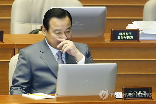 ↑ 굳은 표정의 이완구 총리 (서울=연합뉴스) 이상학 기자 = 이완구 국무총리가 14일 국회 본회의에서 열린 외교·통일·안보 분야 대정부질문에서 굳은 표정으로 앉아 있다.