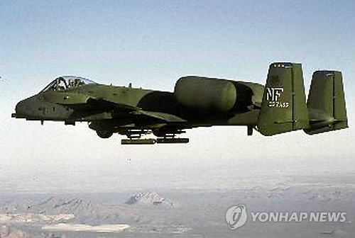 ↑ 美공군, A-10C 공격기 오산에 배치 (서울=연합뉴스) 10일부터 오산 미 공군기지에 6개월간 순환 배치되는 A-10C 공격기. 미 7공군은 약 350명의 공군 장병이 A-10C 공격기 12대와 함께 제354 해외원정비행대대로 편제되며 미국 앨라배마의 제187 전투비행단으로 돌아가는 제100 해외원정비행대대(F-16C 전투기 12대)를 대체한다고 설명했다. 2011.3.9 << 출처 미공군홈페이지 >>