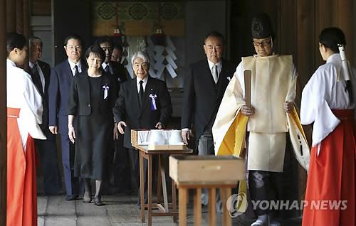 22일 교도통신에 따르면 이날 오전 일본의 초당파 의원연맹 `다함께 야스쿠니 신사를 참배하는 국회의원 모임`이 도쿄도(東京都)도 지요다(千代田)에 있는 야스쿠니신사를 단체로 방문해 참배했다.