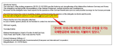 아데나워재단 "한국~유럽 항공료는 지원 안해"