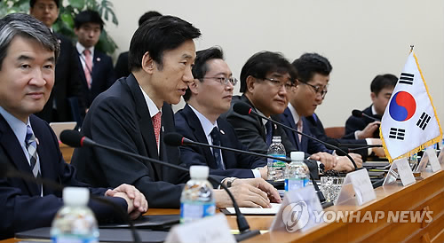 ↑ 윤병세 외교장관 모두발언 (서울=연합뉴스) 전수영 기자 = 윤병세 외교부 장관이 18일 오전 서울 외교부 청사에서 열린 존 케리 미국 국무부 장관과의 한·미 외교장관 회담에서 모두발언을 하고 있다.