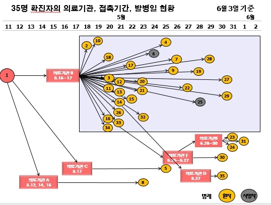 이 병원에 다녀간 첫 환자의 확진 판정이 나온 지 보름 만이다.