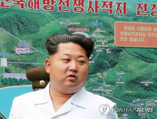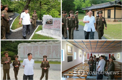 ↑ 북한 김정은, 한국전쟁 조국해방전쟁 사적지 시찰 (서울=연합뉴스) 김정은 북한 국방위원회 제1위원장이 새로 건설·복구된 한국전쟁 조국해방전쟁 사적지를 시찰했다고 노동신문이 9일 보도했다. 김정은 제1위원장은 사적지내 혁명사적관에 대해 "요구대로 훌륭히 건설했다"며 큰 만족감을 표시하고 관련 간부와 과학자들의 공로를 거듭 치하했다. 2015.6.9 nkphoto@yna.co.kr