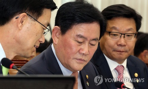↑ 논의하는 최경환 장관 (서울=연합뉴스) 도광환 기자 = 15일 오전 국회에서 열린 기획재정위원회에서 최경환 부총리 겸 기획재정부 장관이 자료를 살펴보며 방문규 제2차관(왼쪽)과 논의하고 있다. 오른쪽은 주형환 제1차관.