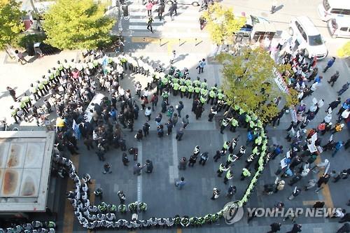 文 국정화반대 서명운동, 보수단체 욕설·고함에 철수
